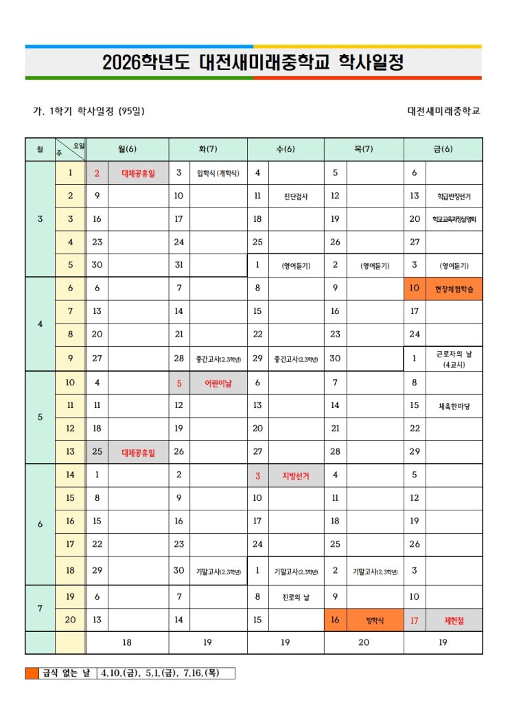 26학년도 새미래중 학사일정
