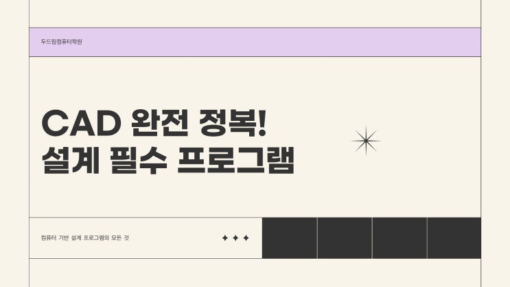 안녕해세요 두드림컴퓨터학원 성남분당점입니다~! 오늘은 캐드에 대해서 간단하게 정리 해 보았는데요! 같이 한번 보시죠! 설계 분야로 취업을 준비하고 있다면 한 번쯤은 들어봤을 프로그램, 바로 *캐드(CAD)*입니다. CAD는 Computer Aided Design의 약자로, 컴퓨터를 이용해 도면을 설계하고 제작하는 프로그램을 말합니다. 과거에는 손으로 직접 제도 작업을 했다면, 이제는 대부분의 설계 작업이 컴퓨터 기반으로 이루어지고 있습니다! 캐드, 왜 배워야 할까요? 요즘 건축, 인테리어, 기계, 산업디자인 분야에서는 CAD 활용 능력이 기본 역량으로 요구됩니다. 특히 *AutoCAD*는 전 세계적으로 가장 많이 사용되는 설계 프로그램으로, 실무에....... <img src="https://blogthumb.pstatic.net/MjAyNjAyMjVfNyAg/MDAxNzcxOTgzNTkyODc1.AoZ3kWaBI0Ma_BWBi7Mv2JjIGhcLLKjQk0bFs3sen_Ig.PWauYSrH-h6jmoJKLQh4zzdX2qkAshvXnDk0_1ubmIog.JPEG/1.jpg?type=s3" />