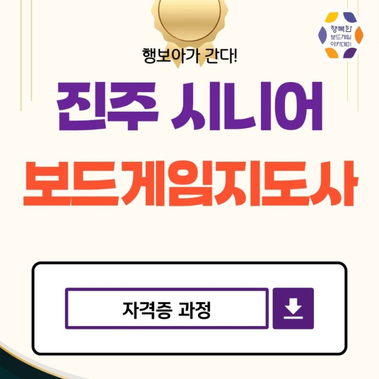 행보아 팀이 진주에서 시니어 보드게임 지도사과정을 오픈합니다. (1/10~11) 이틀간 이루어질 이번과정은 시니어를 대상으로 보드게임을 어떻게 활용할지 대상의 특징 오프닝-게임방법-마무리까지 쏙쏙 전해드릴 예정입니다 이번과정은 행복한보드게임아카데미 김은주 대표님과 제가 내려가 전해드릴 예정입니다. 거리때문에 본사과정 참여가 고민이셨던 분들이라면 적극 추천해 드립니다. 행복한바오밥 자격증소지시 특별할인 해택까지 드릴 예정입니다 신작도 배우고 최신 트렌드 기법을 배우고자 하시는 열정 가득한 선생님들을 기다리고 있습니다 현재 신청자가 많아 조기마감 될 수 있다고 하네요 대표님이 한 분이라도 더 노하우를 전해드....... <img src="https://blogthumb.pstatic.net/MjAyNjAxMDRfMjc2/MDAxNzY3NTMwNDQ5Nzk4.Eou1NbGaqVNPJXq8JwVBZ8hyr7zwFG64_6LyNe7Z9Zsg.ZmZ9Ym4RDUcRDIMU49K7v2XYLbwluMP50m-kwppxzJ4g.JPEG/900%A3%DF1767528660164.jpg?type=s3" />