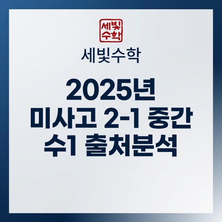 안녕하세요~ 미사수학학원 세빛수학입니다. 가정의 달 5월, 행사도 많고 마음도 들뜨기 쉬운 시기죠? 하지만 우리 미사고등학교 학생들은 중간고사가 끝났다고 마냥 쉴 수만은 없어요. 미사고 내신은 한 번의 시험으로 끝나는 게 아니라, 자신의 약점을 분석하고 기말고사를 완벽히 대비하는 훌륭한 나침반이 되기 때문이에요. 오늘은 수학 교육 전문가의 매서운 시선으로, 2025년 미사고 2학년 1학기 수학1 중간고사 시험지를 낱낱이 파헤쳐 드릴게요. 대충 요약하는 뻔한 리뷰가 아닙니다. 기출문제 하나하나의 연계 출처와 변형 포인트를 모조리 분리해서 분석했습니다. 미사고 내신을 준비하는 학생과 학부모님들, 두 눈 크게 뜨고 따라와 주....... <img src="https://blogthumb.pstatic.net/MjAyNjAzMjlfMjI1/MDAxNzc0Nzc5NzQzMjkz.MRViZ_k-Ye92Q1Q8IcHKglBcgh2gyITWmC81_dDk4ZAg._ZQmPGL3gpS6a81BouZ2cCgoA0DbxqhkH81UU-usCkcg.JPEG/865e0acc-aed2-4e19-9c63-9fbc3468a03e.jpg?type=s3" />