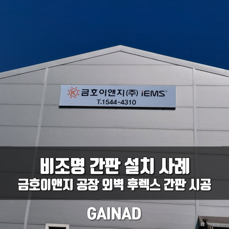 금호이앤지 공장 외벽 후렉스 간판 시공|비조명 간판 설치 사례