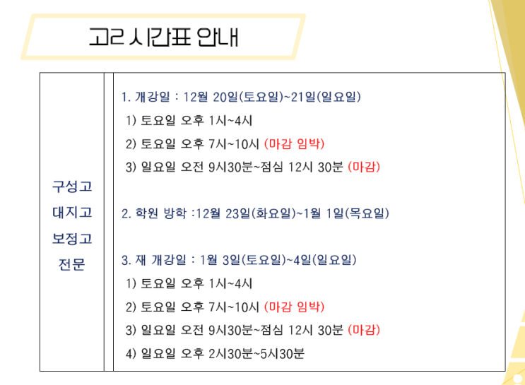[예비고2] 시간표 안내
