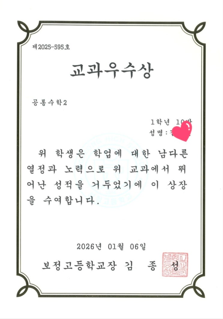 [보정동 화성수학학원] 교과우수상♡