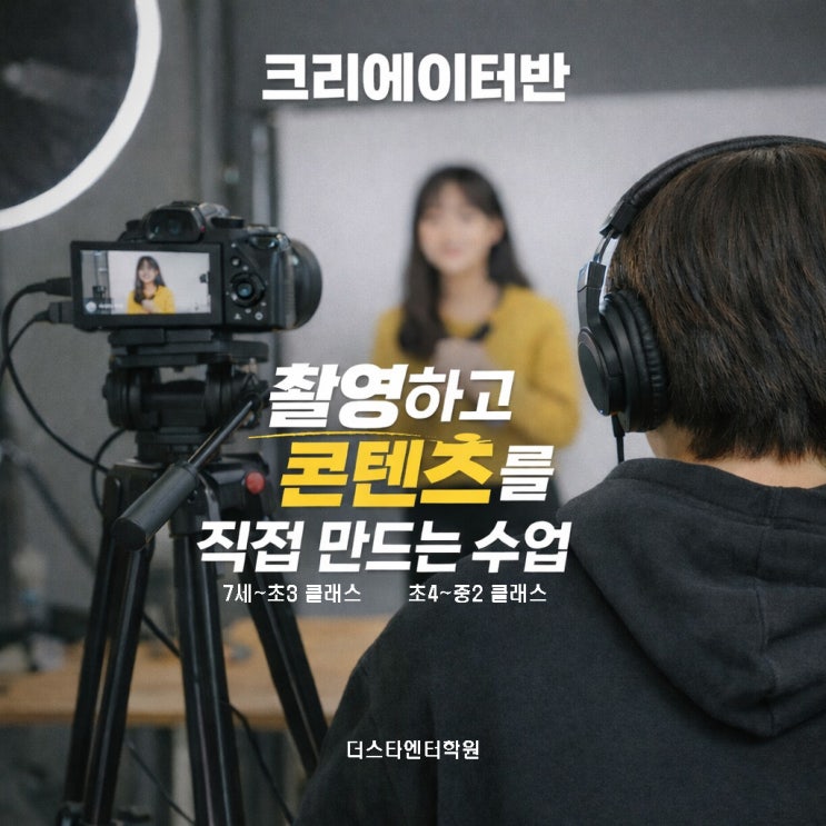 요즘 학원으로 들어오는 문의 중 가장 많이 늘어난 질문이 있습니다. “유튜브나 숏폼을 제대로 배울 수 있는 수업은 없나요?” 더스타엔터학원에는 연기·아이돌 수업과는 완전히 다른 트랙의 ‘크리에이터반’이 있습니다. 크리에이터반은 이런 수업입니다 크리에이터반은 연기를 잘하는 아이를 만드는 수업이 아니라, 스스로 콘텐츠를 만들 수 있는 힘을 키우는 수업입니다. 어떤 영상을 찍을지 기획하고 직접 촬영하고 카메라 앞에서 말해보고 결과물을 완성해보는 수업 매 수업마다 실제 결과물이 남는 구조로 진행됩니다. 이런 학생에게 추천합니다 유튜브·숏폼에 관심 있는 학생 말하는 걸 좋아하지만 오디션은 부담스러운....... <img src="https://blogthumb.pstatic.net/MjAyNTEyMjRfMjY0/MDAxNzY2NTUzODkyOTgy.D7pFjfu1v08I6LHRf3-G0Eml6ekwCV-y3xujFXMg5L8g.VYrLiO0LwURRaETv5h41JK9LmjO1K50Sc3CCkdzHFP0g.JPEG/%C5%A9%B8%AE%BF%A1%C0%CC%C5%CD%BD%C5%BC%B3%C0%CC%B9%CC%C1%F6.jpg?type=s3" />
