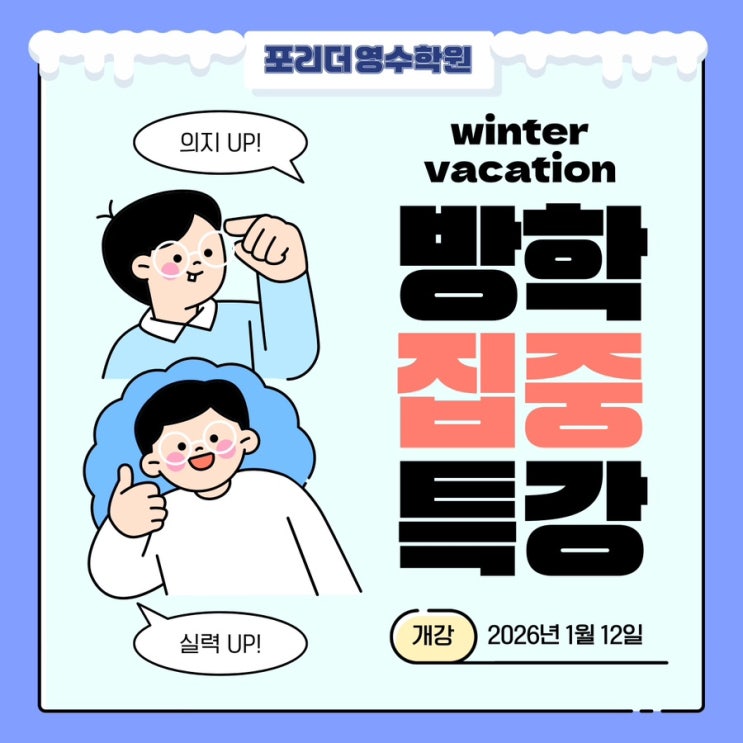포리더 영어 | ❄️ 2025 겨울방학 영어 특강 안내 ❄️ | 진안 병점 안화 영어 수학 학원