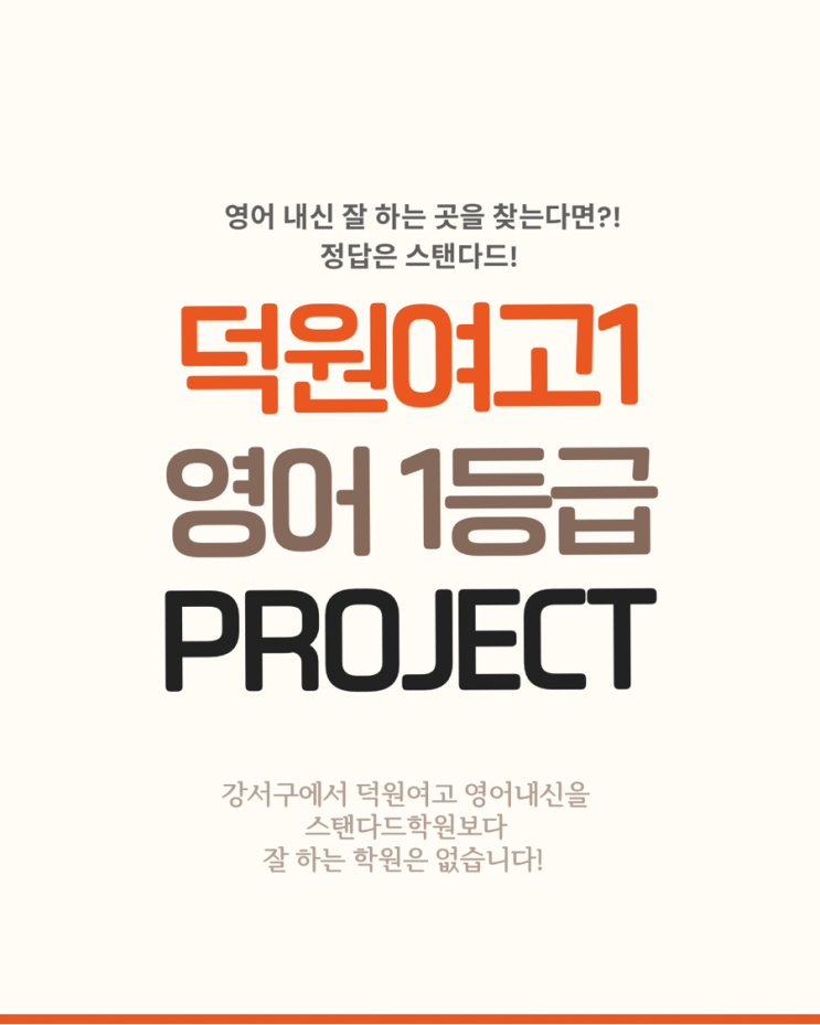 안녕하세요. 강서구 영어 내신 1등학원 스탠다드학원입니다. 뭐니 뭐니 해도 스탠다드하면 덕원여고! 덕원여고 영어 내신을 가장 잘 하는 학원 = 스탠다드학원이죠! 지난 10년간 덕원여고에 열심히 공을 들여온 스탠다드학원이 올해는 새로운 내신 시스템으로 업그레이드 하였습니다. 작년 2022개정부터는 아시다시피 교고학점제와 5등급제 시행으로 내신기조에도 큰 변화가 생기고 학생들의 학습성향도 급격하게 바뀌어 학원의 시스템도 그에 맞춰 변화 하게 되었습니다. 스탠다드는 2017년 부터 자체제작교제와 클리닉시스템, 동형모의고사와 학교별 분석자료까지 지금은 많은 학원들에서 내신대비로 자리잡고있는 시스템을 가장 먼저 도....... <img src="https://blogthumb.pstatic.net/MjAyNjAyMDZfMjMg/MDAxNzcwMzA4MzY0OTk3.5r1ogPSZvlCW18k912hOLrXb2tPY_YeLKkvB1fbNIIkg.pIHigtqYNVEt4mwWJEyNt9TY4H0WPIiv_P25ZTYzXWAg.PNG/%BF%B5%BE%EE_%B3%BB%BD%C5_%C0%DF_%C7%CF%B4%C2_%B0%F7%C0%BB_%C3%A3%B4%C2%B4%D9%B8%E9%A3%BF%A3%A1_%C1%A4%B4%E4%C0%BA_%BD%BA%C5%C4%B4%D9%B5%E5%A3%A1_%A3%AD_1.png?type=s3" />
