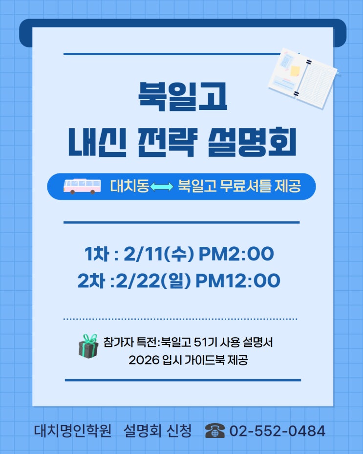 북일고내신 대비를 위한 대치명인학원 내신 전략 설명회 안내