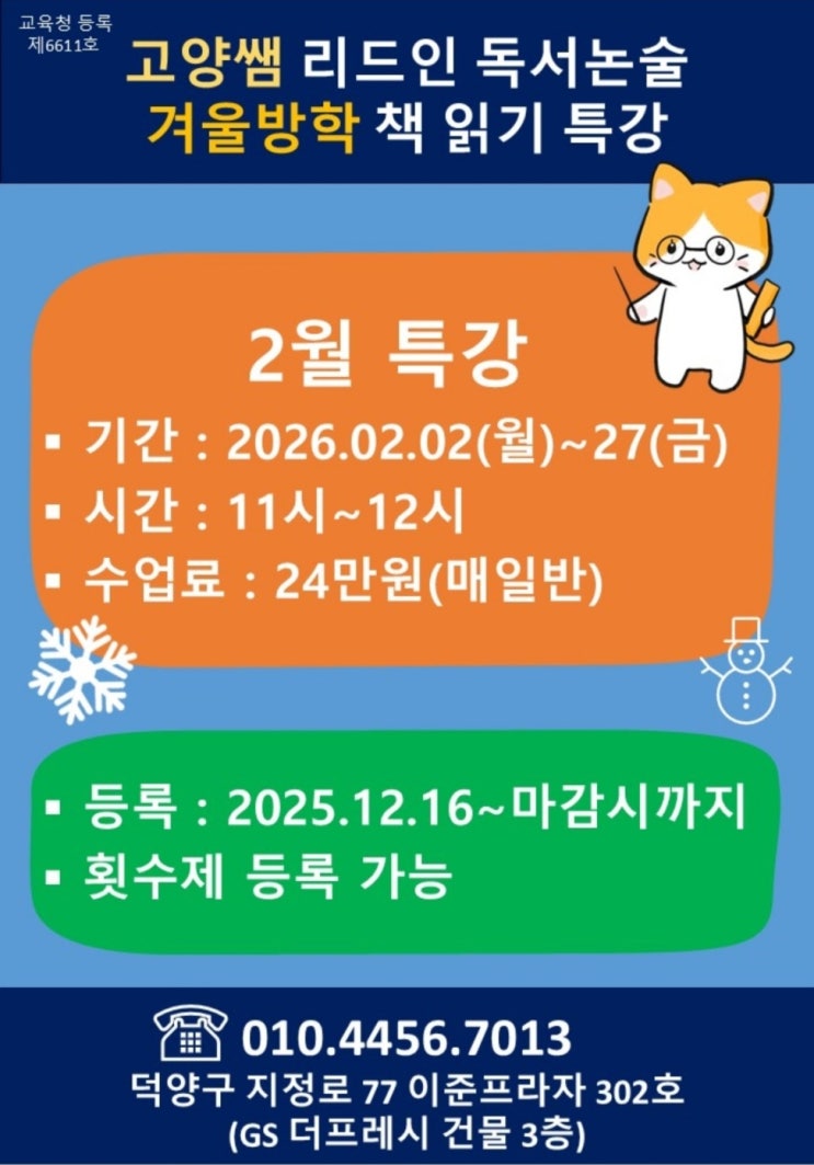지축 논술 전문관 고양쌤리드인독서논술 결울방학 특강 안내