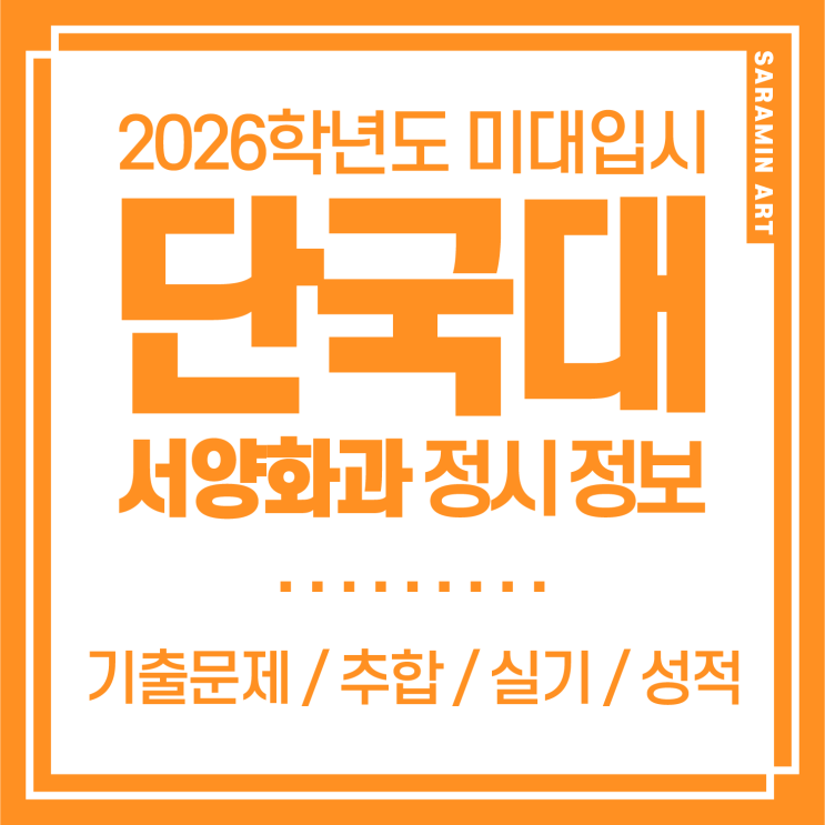 안녕하세요! 홍대 앞 [인체수채화, 정물수채화, 인체소묘, 정물소묘, 인체실기, 정물실기] 전문 사람인미술학원입니다! 단국대 미대 서양화과 정시에 대한 이야기를 하려고 합니다. 정시에서 중요한 점은 실기와 수능점수를 가지고 평가를 한다는 거죠. 그래서 수능점수와 실기 정도를 보면서 대학을 선택해야 합니다. 단국대 미대 서양화과 일정 원서접수 : 25.12.29 ~25.12.31 실기고사 : 26.01.22 합격자 발표 : 26.02.02 단국대 미대 서양화과 전형요소 모집인원 : 12 전형요소비 : 수능 30% + 실기 70% 수능 성적 반영비 :국어 40% + 영어 40% + 수학, 탐구(1) 중 택1 20% 실기고사 : 인체수채화, 정물수채화 중 택1 / 2절, 3절 / 5시간 단....... <img src="https://blogthumb.pstatic.net/MjAyNTEyMTNfMTg2/MDAxNzY1NjIyNzgwODY1.uKGmUDkOIxOXz--r16roJji7kiM8PP_my7p_qxSTfngg.VoJGScye8hncidzXKWnVavOZYvfFqCgwxecxUQPUrbAg.PNG/%B4%DC%B1%B9%B4%EB_%B4%DC%B1%B9%B4%EB%B9%CC%B4%EB_%B4%DC%B1%B9%B4%EB%BC%AD%BE%E7%C8%AD_%B4%DC%B1%B9%B4%EB%C1%A4%BD%C3_%B4%DC%B1%B9%B4%EB%B9%CC%B4%EB%C1%A4%BD%C3_%B4%DC%B1%B9%B4%EB%BC%AD%BE%E7%C8%AD%C1%A4%BD%C3_%281%29.png?type=s3" />