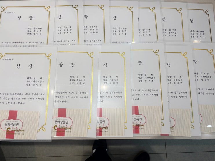 안녕하세요. 기파랑문해원 강서우장산원입니다. 2026년 첫 번째 정기평가를 성공적으로 마쳤습니다. 이번 정기평가는 우리 아이들의 현재 학습 수준을 객관적으로 점검하고, 전국 단위 학생들과 비교해 정확한 위치를 파악할 수 있는 중요한 시험입니다. ✔ 정기평가 운영 안내 초등부 : 학기별 2개월에 한 번, 연 3회 실시 중등부 : 학기별 3개월에 한 번, 연 2회 실시 정기적인 평가를 통해 실력을 점검하고, 부족한 부분은 보완하며 체계적으로 성장할 수 있도록 지도하고 있습니다. 그동안 꾸준히 노력해 우수한 성적으로 상장을 받은 학생들 모두 진심으로 축하합니다. 하지만 무엇보다 값진 것은 성적 그 자체가 아닌, 스스로의 실력 향상....... <img src="https://blogthumb.pstatic.net/MjAyNjAyMjBfNzcg/MDAxNzcxNTg4NzUxNDc4.8TXJtFnG35WTK37F7fbwhSuIwJ_zI90aD46JgxzIKo4g.X1pd0kMpbZTiDiX4JnbvI_sslnC8i2BKDtdns-1Mgr0g.JPEG/KakaoTalk_20260220_204710848.jpg?type=s3" />
