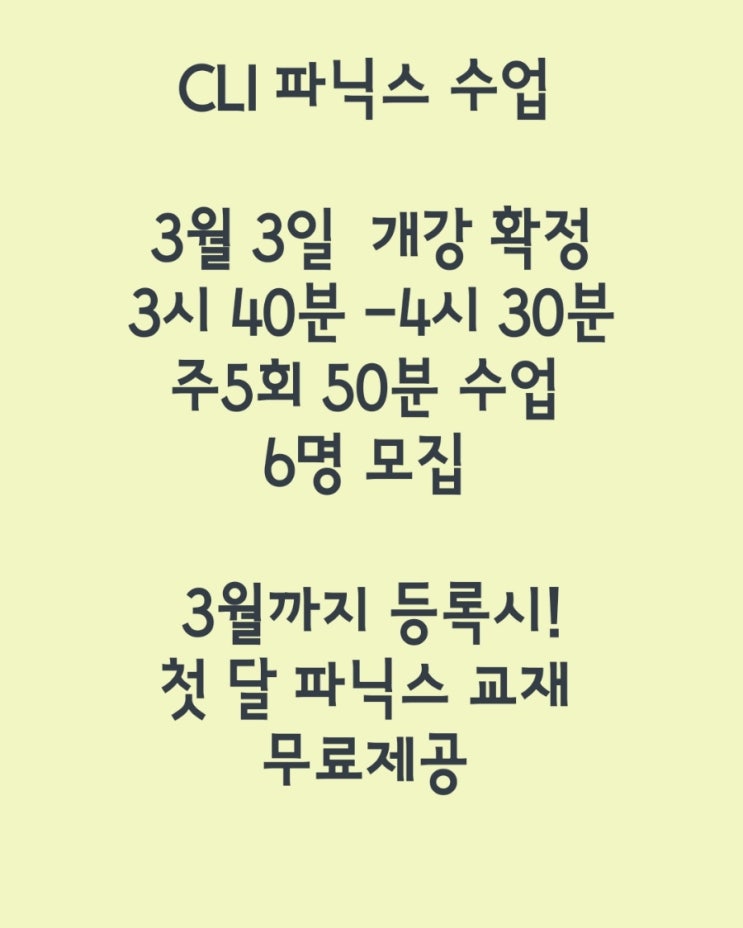 토요일 오전 수업 진행예정 입니다^^