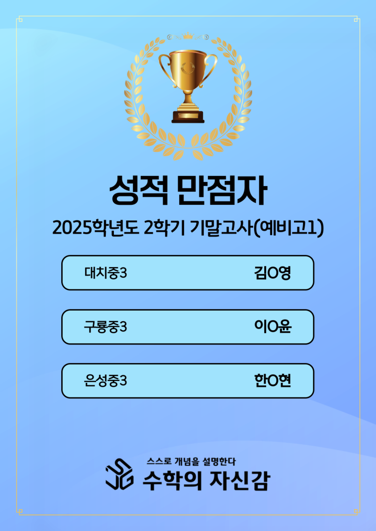 2025학년 2학기 기말고사 성적우수자(예비고1)