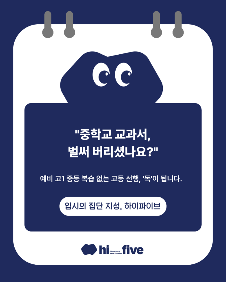 대학입시의 초강수 대치동 8학군 출신 원장님이 운영하는 하이파이브의 믿고 맡길 수 있는 케인쌤 입니다. - 2026학년도가 이제 곧 입니다. 특히 중학교를 졸업하고 예비 고등학생이 되는 학생들은 이제 본격적인 입시의 궤도에 올라타며 여러가지 고민이 없을 수 없을텐데요. - 오늘은 케인쌤과 함께 예비 고1 학생들을 위한 조언을 아끼지 않아 볼 예정이니! 예비 고1을 맞이한 학생 또는 학부모님들께서는 오늘 글을 필독하셔서! 도움이 되셨으면 하는 바램입니다. 아니 벌써? 중학교 교과서를 몽땅 버리셨다고요? 부족한 부분이 없진 않았는지 스스로에 대해 꼼꼼히 점검 해보았나요? - 무작정적인 고등 선생 학습은 앞으로의 입시에 있어 큰....... <img src="https://blogthumb.pstatic.net/MjAyNTEyMjdfNDIg/MDAxNzY2Nzk2NzkxMDIy.cZv2_70trYC_tdA8wV3pZSFMtRk1PSYrxJFs7_UV7Lwg.wMgf3KdMtVNEhDiaN2Js6GgyvYR0jSv6oOitSTzwfYcg.PNG/IMG%A3%DF0645.PNG?type=s3" />