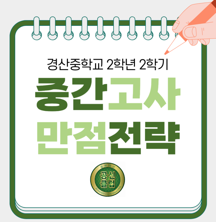 2025학년도 경산중 2학년 2학기 중간고사, 공신클럽의 영어 만점대비 노하우! 안녕하세요, 최상위 영어학습의 새로운 패러다임을 만드는 공신클럽입니다. 경산중 재원생은 3년 연속 100점으로 전교 1등을 유지하며, 과학고등학교에 수석 입학하는 의미있는 성과를 이뤘습니다. 오늘은 경산중학교 2학년 2학기 중간고사 내신 분석과 만점 대비 전략을 함께 알아보겠습니다. Ⅰ. 시험 범위 및 출제 비율 (1) 시험 범위: ① 능률(김) 교과서: 5과) 목적격 관계대명사, 감정을 나타내는 과거분사 6과) 가주어 it, 간접의문문 ② 외부지문: 학교 프린트물 (2) 출제 비율: 교과서 85%, 외부지문 15% 경산중학교 내신의 특징은 100% 선택형, 외부지문 포....... <img src="https://blogthumb.pstatic.net/MjAyNTEyMjZfMTI3/MDAxNzY2NzUyOTc2NjQ0.fYU6Xq285mQIVoo7YcBoKY8Ykhd_4ykcPyM8f9heFtcg.rMIbvyKGz7BoCgf48abdOe3_oS7uVQeq72ye-m1ox9Ug.PNG/%C7%A5%C1%F6.png?type=s3" />