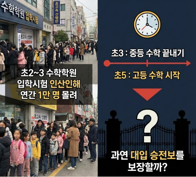 도곡동 수학학원 초등학생부터 선행하는데 왜 수포자는 늘까? 안녕하세요. 도곡동 수학하원 아이들의 수학적 임계점을 돌파시키고 결과로 그 가치를 입증하는 최상위권수학 대치관입니다. 최근 마포를 비롯한 서울 주요 학원가에서 벌어진 풍경을 보셨나요? 지난 2월 초, 초등학교 2~3학년 아이들이 수학학원 입학시험을 보기 위해 인산인해를 이뤘습니다. 연간 만여 명이 넘는 아이들이 몰리는 이 시험의 실체는 '초고속 선행'을 위한 관문입니다. 하지만 우리는 질문해야 합니다. 초등학교 3학년 때 중등 수학을 끝내고, 5학년 때 고등 수학을 시작하는 이 광풍이 과연 우리 아이의 대입 승전보를 보장해 줄까요? 하루 7시간의 사투....... <img src="https://blogthumb.pstatic.net/MjAyNjAyMDhfMTI5/MDAxNzcwNTM5MDM0MjQx.hB5MCA_Nee_KZ6k3fVjmYZj7Z2ewbj6cKzETvdRQ6F8g.fWejW63C4fHH3W-8NUxbSQ9MQnfB4hvXJU0Yo1CX6LAg.PNG/image.png?type=s3" />