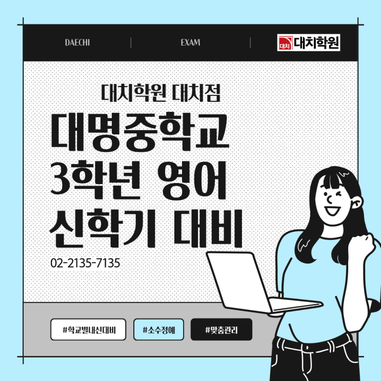 안녕하세요, 대치학원입니다. 추웠던 날씨가 조금씩 풀리면서 어느덧 신학기를 준비해야 할 시기가 되었습니다. 새로운 학년을 앞두고 기대도 크지만, 특히 중학교 3학년은 내신의 중요성이 더욱 커지는 시기이기 때문에 걱정도 함께 따라오는 것 같습니다. 중3 영어는 단순히 교과서 내용을 아는 것에서 끝나지 않습니다. 학교별 출제 경향을 정확히 이해하고, 어떤 유형에서 변별력이 갈리는지를 미리 파악하는 것이 무엇보다 중요합니다. 오늘은 대명중학교 3학년 영어 기출을 바탕으로 어떤 문제 유형이 반복 출제되고 있는지, 그리고 어떤 부분에서 학생들이 어려움을 느끼는지 함께 살펴보겠습니다. 대명중학교 영어 내신 특징 대명중 3학....... <img src="https://blogthumb.pstatic.net/MjAyNjAyMTJfOTcg/MDAxNzcwODcxNjM1ODg4.tmMfA4jisp9TGposlzeaGKMh-KH2wbTM-IeLzHT1wkEg.iM9R11uj6BRoXUUP8koJVL4qW9sVn8tEEwFyV8pHc9sg.PNG/1.png?type=s3" />