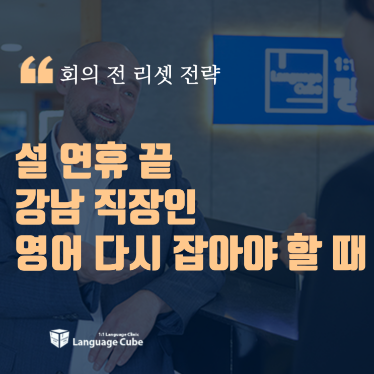 설 연휴가 끝나면 강남 오피스의 공기는 확실히 달라집니다. 미뤄둔 프로젝트가 동시에 재개되고, 해외 본사 보고와 글로벌 미팅 일정이 빠르게 잡히죠. 특히 외국계 기업, 대기업 전략팀, 금융·IT·전문직 종사자라면 이 시기 영어는 준비가 아니라 즉시 실행해야 하는 업무 역량입니다. 연휴 직후 가장 많이 나오는 말도 비슷합니다. 영어 감이 조금 떨어진 것 같아요. 하지만 중요한 건 감각이 아니라, 이번 분기 안에 영어 퍼포먼스를 끌어올릴 수밖에 없는 구조를 만드는 것입니다. 연휴 후 영어가 막히는 이유 강남 직장인분들과 상담을 하다 보면 이런 이야기를 자주 듣습니다. 듣기는 되는데 말이 바로 안 나와요. 회의에서 타이밍을 놓치....... <img src="https://blogthumb.pstatic.net/MjAyNjAyMjBfNjUg/MDAxNzcxNTc4Nzg3MjA0.fB8r1oLEClvtXvcWlWO50Sdjz8YrLehG4M-79_zqsQEg.mnh5Nym7WNCT7e9PP4B7FS-_5pKE2aaMteItrbEkMHgg.PNG/001.png?type=s3" />