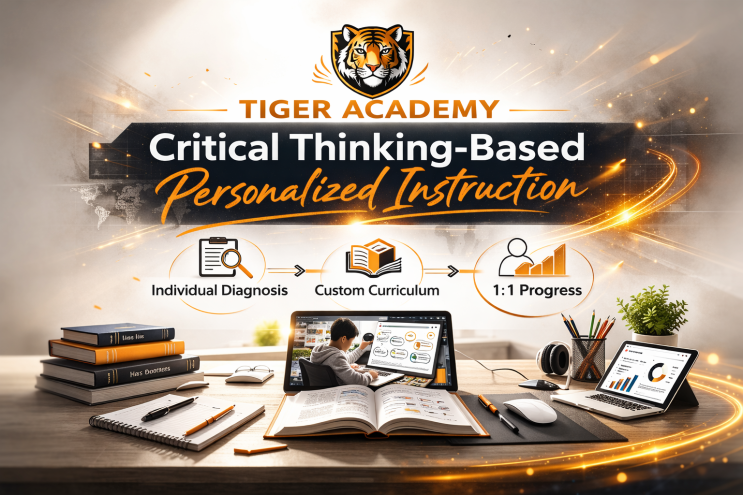 초 4-중3! 타이거 아카데미 3월 모집 안내 사고 구조 학원 TIGER ACADEMY 혹시 이런 고민이 있으신가요? ✔ 열심히 하는데 성적이 정체된 학생 ✔ 문법은 배웠지만 독해가 막히는 학생 ✔ 문제는 많이 풀지만 이해가 부족한 학생 ✔ 설명은 듣는데 스스로 정리가 안 되는 학생 점수는 결과입니다. 사고 구조가 바뀌어야 성적이 바뀝니다. 모집 대상 초5 ~ 중3 중학 완성 및 고등 선행 과정 수업 시간 초4 G4 ENGLISH 월 · 수 오후 2:30 ~ 4:30 G4는 무엇을 배우나요? 초4는 “문제를 푸는 영어”가 아니라 “생각하는 영어”를 시작하는 시기입니다. ✔ 문장의 구조를 눈으로 보는 훈련 ✔ 말하기 이전, 이해하는 힘 기르기 ✔ 단어 암기가....... <img src="https://blogthumb.pstatic.net/MjAyNjAyMjNfMjQ5/MDAxNzcxODQ1MzgxNzY5.4xuvYKw5daG0AcPEwH6QskBP8loE0z-DgTCZkkPTbnMg.pAbdiIJzNrS1u_suIR0bJ5MQlMhWjbl7SFuiU-VJYeIg.PNG/ChatGPT_Image_2026%B3%E2_2%BF%F9_23%C0%CF_%BF%C0%C8%C4_05_37_52.png?type=s3" />