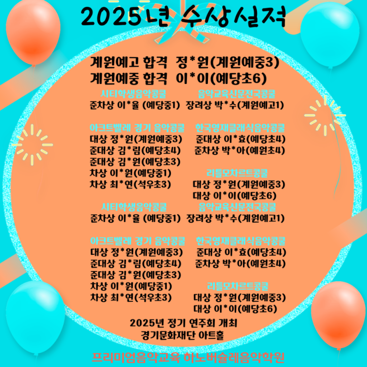 동탄피아노입시학원 2025년 수상실적