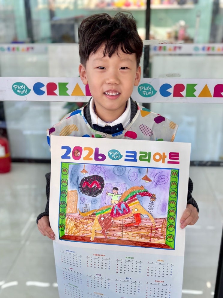 수업의 저작권은 크리아트와 센텀시티원 어린이에게 있습니다. 이번 수업에서는 2026년 달력 제작 활동을 통해 ‘말’을 주제로 한 입체·가동형 작품을 완성했습니다 아이들은 먼저 2026년이 십이지신 중 ‘말’의 해라는 점을 알고, 말의 특징과 움직임에 대해 이야기 나누는 시간을 가졌어요. 이후 말의 다리가 실제로 움직일 수 있도록 연결 구조를 설계하며, 단순한 그리기에서 나아가 구조적 사고와 입체 표현에 도전했습니다. 말의 다리를 고정하고 연결하는 과정에서는 손의 소근육 사용 방향과 위치를 인식하는 공간 감각 순서를 지켜 완성하는 집중력 이 자연스럽게 요구되고, 채색 단계에서는 크레파스와 색연필을 활용해 배경과 말....... <img src="https://blogthumb.pstatic.net/MjAyNjAxMTVfMTQ4/MDAxNzY4NDUyNzk3Mjg1.YGfBMYsGNkEGulwqlxtVn271n_PXPsD58zYGjj4ijUwg.Gnog0GUJ97EQihyFD3C9lF2u31P781LwyV_JkP5FsTgg.JPEG/IMG%A3%DF3306.JPG?type=s3" />