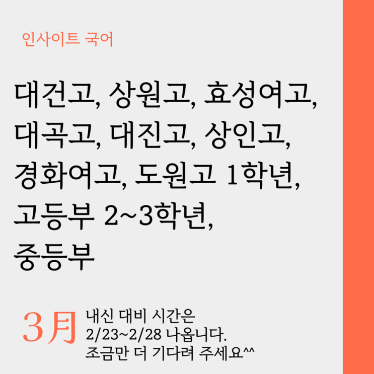 3월 중순 내신 시간표는 2/23~2/28 사이 나옵니다^^