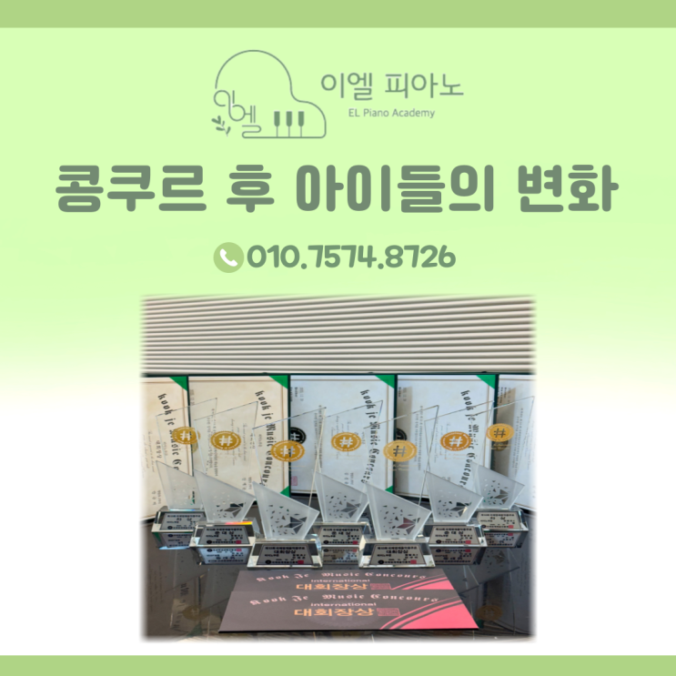 콩쿠르는 단순히 상을 받기 위한 자리가 아닙니다. 아이의 연습 태도, 집중력, 무대 매너, 그리고 마음가짐까지 드러나는 과정입니다. 그래서 저는 매번 대회가 끝난 뒤, 결과보다 "아이들이 어떻게 달라졌는지"를 먼저 떠올리게 됩니다. 12월 20일, 국제영재음악콩쿠르에 참가했습니다 지난 12월 20일, 아이들과 함께 국제영재음악콩쿠르에 참가했습니다. 장소는 부천 복사골 문화센터였는데요! 낯선 공간, 조용한 객석, 무대 위 피아노 한 대, 연습실과는 전혀 다른 분위기였습니다. 그날은 단순히 대회에 참가한 날이 아니라, 아이들이 자기 자신에게 도전해 본 소중한 시간이었습니다. 초등 피아노 콩쿠르 준비 과정, 아이마다 다....... <img src="https://blogthumb.pstatic.net/MjAyNjAyMThfMTUw/MDAxNzcxMzkyNDU3MTgz.xc45Cya32myIlExmDPMKzV-e6fNG_-qa28F7MC7K9iAg.RVTe3_uC1V2GVxWsve0-k41yKbRAr80l0ljLxh7a3C4g.PNG/%C1%A6%B8%F1%C0%BB-%C0%D4%B7%C2%C7%D8%C1%D6%BC%BC%BF%E4_-004_%281%29.png?type=s3" />