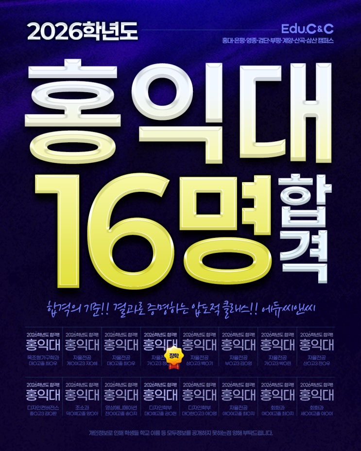 [검단미술학원] 2026년 홍익대 16명 합격! 홍대합격자발표