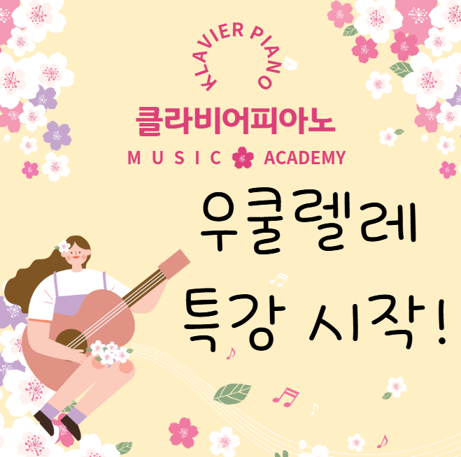 안녕하세요, 클라비어피아노입니다! 아이들의 음악적 감수성과 창의력을 키워줄 우쿨렐레 특별 강좌를 시작합니다. 우쿨렐레는 작고 귀여운 외모만큼이나 배우기 쉬워 아이들이 악기에 대한 흥미를 느끼고 자신감을 얻기에 최고입니다. 단순히 연주 기술만 배우는 것이 아닙니다. 아이들은 악기를 통해 청음 능력을 기르고, 손가락의 미세 근육(소근육) 발달을 촉진하며, 친구들과 함께 연주하며 협동심과 사회성을 키울 수 있습니다. 새로운 악기에 도전하며 성취감을 맛보고, 음악을 더욱 폭넓게 즐기는 아이로 성장할 수 있도록 클라비어피아노가 함께하겠습니다! 지금 바로 문의하세요 ● 카카오톡 실시간 문의하러가기 ● http://pf.ka....... <img src="https://blogthumb.pstatic.net/MjAyNTEyMDNfMTU2/MDAxNzY0NzE3NzQxOTQx.cCOrc0i5SrjD0PtL89CKDphvuDKSCFeqLmRpwjs1_FUg.eYHt6MKyAXP3jZmY-VnkjVy6AabvImAjNbp4LUZylpcg.PNG/KakaoTalk_20251203_081357787.png?type=s3" />