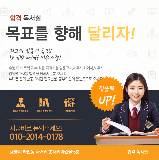 일년동안 매일 제일 먼저 독서실 문을 열었던 전* 민 학생 홍익 대학교 전자공학 합격을 축하 합니다. 노력은 결코 배신 하지 않는다는 말처럼 ~~ 묵묵히 열심이 공부 하던 모습이 아직도 눈에 선하기만 합니다. 홍대 ,건국대학교, 숭실대학교, 국민대학교, 아주대학교, 아주대 항공대 총 6군데 대학에 합격 하였는데 홍익대학교 전자공학부로 가기로 마음먹었다고 합니다. 편입 시험이 수능보다 더 어려운건 아시죠? 멋진 학교 생활을 응원합니다. 그리고 더 큰 뜻으로 승승 장구 하는 미래의 모습도 응원 합니다. 수능 , 편입 , 반수 , 재수 각종 공무원 시험 등등 여러 시험 준비 ~ 합격 하는 합격 독서실로 오세요. 공부 열정이 있다면 ~~ 함....... <img src="https://blogthumb.pstatic.net/MjAyNjAyMjVfMTQ3/MDAxNzcyMDA2MTQwNjEx.GtY6TZFK3lmRNk9xl2udfPOK1UYcBYRN4b3xCvb9xoQg.WA96i3su280Zq-_fW5Rj0JnjL54xxSURqCEt4guKFTgg.PNG/1771830727287.png?type=s3" />
