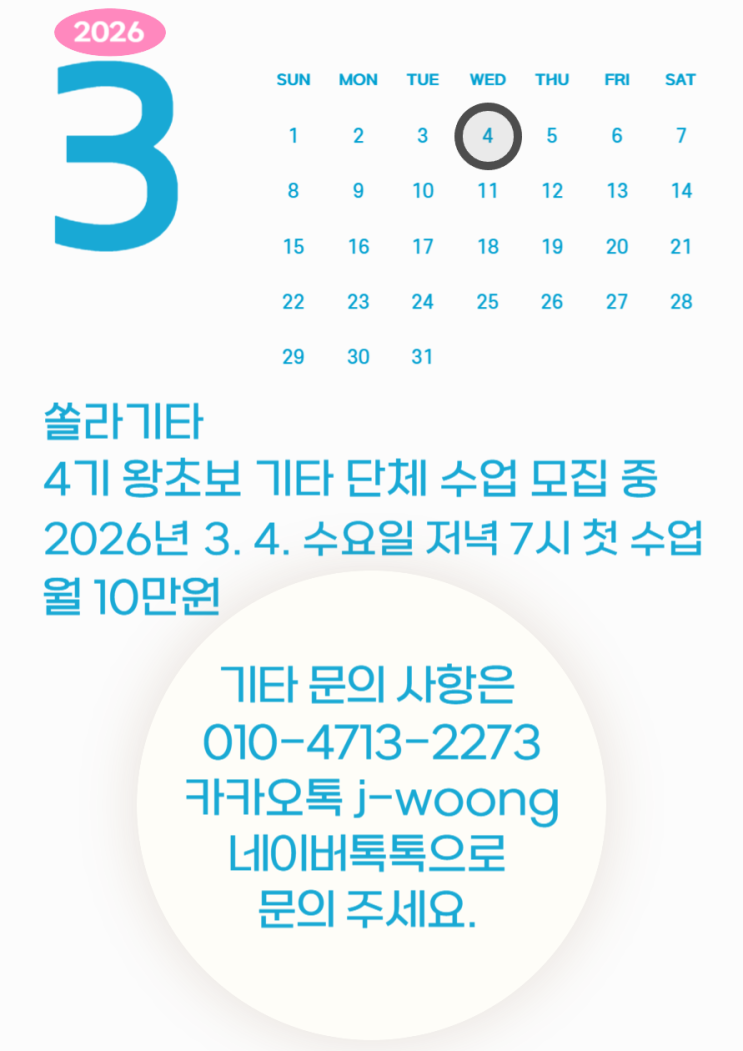 평택기타학원 칠원동 동삭동 지제역 기타레슨:)2026년 3월 4기 왕초보 기타 단체 수업 모집