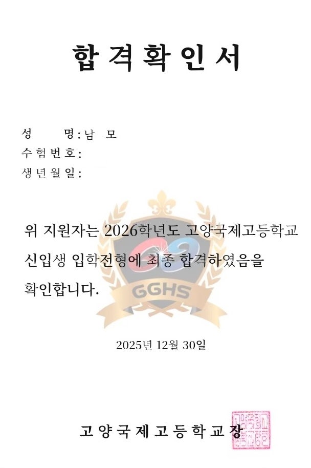 안녕하세요~~~ 비아바랩어학원입니다. 요즘 자사고, 특목고 합격자 발표 기간이죠? 오늘은 드디어 저희 비아바랩어학원에서 일산의 특모고인 고양 국제 고등학교 합격생이 나왔습니다. 맙소사!! 세상에 이틀연속 자사고, 특목고 합격자 배출입니다. ㅜㅠ 감사한일이죠. ㅜㅠㅜㅠ 심지어 이번에 2.56:1로 역대 경쟁률로 치열했죠. 대견하고 기특하네요 ㅜㅠ 우리 경모도 저희 일산 백마 영어학원에서 3년이상 같이 공부한 친구입니다. 역시, 꾸준히 한다면 이뤄낸다는 것을 우리 아이들을 보면서 같이 느낍니다. 작은 성장이 큰 결실을 이루는 법이죠, 우리 비아바랩둥이들이 모두 자신의 역량을 마음껏 펼쳐 꿈을 이룰 수 이루는데 영어가 도움이....... <img src="https://blogthumb.pstatic.net/MjAyNTEyMzBfMjIw/MDAxNzY3MDk1NDUzNzI4.NuLLYh4r_D8udyVDtss9z1h9Mf8oBfk7vvDZ78sCaqsg.X7xBaW7xYTg-xXXpdDbzZShDXZy8Cu52cReB6OJS_oAg.JPEG/IMG%A3%DF5038.JPG?type=s3" />