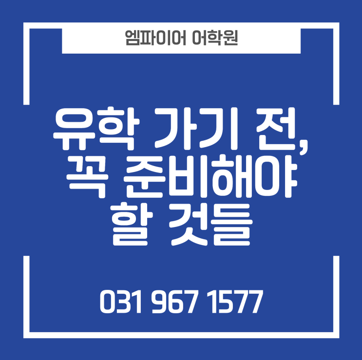 안녕하세요 일산 학부모님들 엠파이어 어학원 릴리 원장입니다! 유학을 결심했다면 진짜 준비는 비자나 항공권이 아니라 ‘출국 전 학습 준비’부터 시작됩니다. 많은 학생들이 “가서 배우면 되지”라고 생각하지만, 실제 유학생들의 공통된 후기는 하나입니다. “미리 준비하고 갔으면 훨씬 덜 힘들었을 것 같아요.” 오늘은 유학을 계획 중인 학생들이 출국 전에 꼭 준비해야 할 핵심 포인트를 정리해드립니다. 영어 실력, ‘시험 점수’보다 중요한 건 이것 토플, 아이엘츠 점수는 유학의 입장권일 뿐입니다. 진짜 중요한 건 아래 능력들입니다. ✔️ 수업 내용을 듣고 이해하는 리스닝 ✔️ 질문하고 의견을 말하는 스피킹 ✔️ 교과서·자료....... <img src="https://blogthumb.pstatic.net/MjAyNjAxMDVfMjIw/MDAxNzY3NjAwNDUyNTc5.6bixN1u9Whb0zsjcFOWmYCrFtnsjuqrZUPJHzfS7pqEg.kERktPVNOe4MnjvbIoZag2D9v3GDq-W2w_6FfgJ4CIcg.PNG/Screenshot_2026-01-05_at_5.07.20%3FPM.png?type=s3" />
