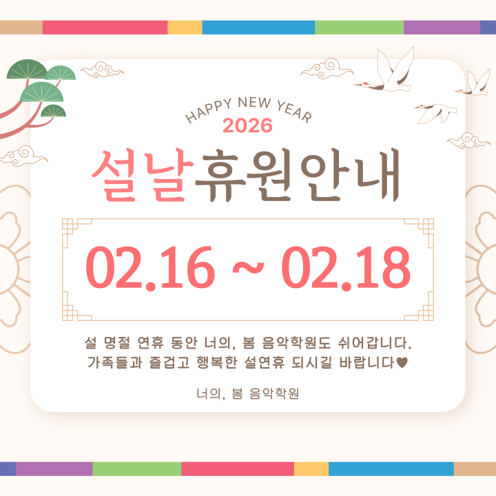 2026 | 너의 봄 음악학원 설 연휴 안내문