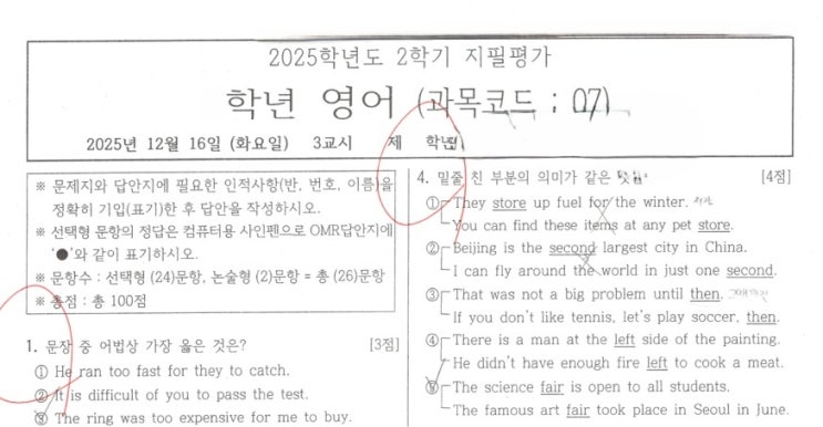 ◈▣◈▣◈▣◈▣◈▣◈▣◈▣◈▣◈▣◈ [ ◈ 2025년 2학기말 조남중 영어 지필평가 긴급 분석 리포트 ◈ ] 1️⃣ 중1을 덮친 막대한 범위 & 중2 시험결과의 역대급 양극화 2️⃣ '양치기' 공부가 오히려 고득점을 가로막는 이유 3️⃣ 변화하는 영어교육의 핵심: '어순체화'만이 정답입니다 ◈▣◈▣◈▣◈▣◈▣◈▣◈▣◈▣◈▣◈ 조남중 학부모님, 그리고 우리 학생 여러분 안녕하세요. 변화하는 입시의 흐름 속에서 정확한 이정표를 제시하는 하지영 영어학원입니다. 2025년 12월 16일 치러진 2학기말 조남중 영어 지필평가는 단순히 한 학기를 마무리하는 시험 이상의 의미를 담고 있었습니다. 특히 중학교 입학....... <img src="https://blogthumb.pstatic.net/MjAyNTEyMjNfMTQy/MDAxNzY2NDkyMzkzNzUx.l61M1wMJQGBi0oFG0RksUkDqXflyNEfHl4DZggt9gC8g.23e9wSG_R1AjLo7BkmGTGi79gXhcen7ZZnSzkcCV1eAg.JPEG/%BD%C3%C7%E8%C1%F6.jpg?type=s3" />