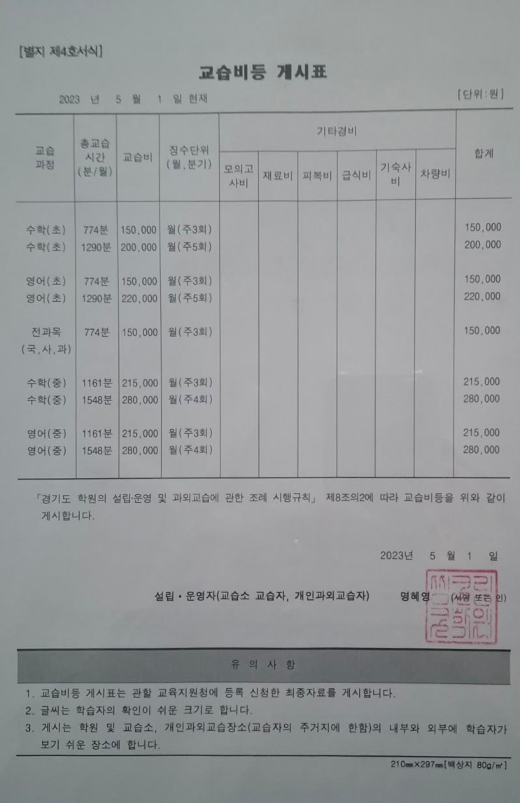 [송우찬수학학원] 송우찬수학학원 수업의 특징 - 학생 맞춤 개별첨삭