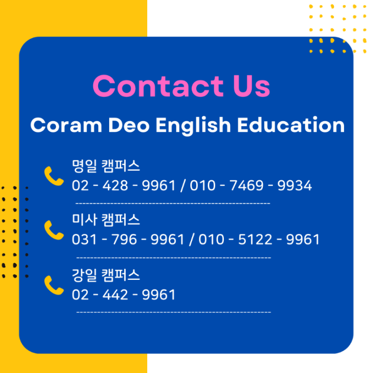 강동미사 코람데오 영어교육 명일점 미사점 강일점 캠퍼스 전화번호 안내