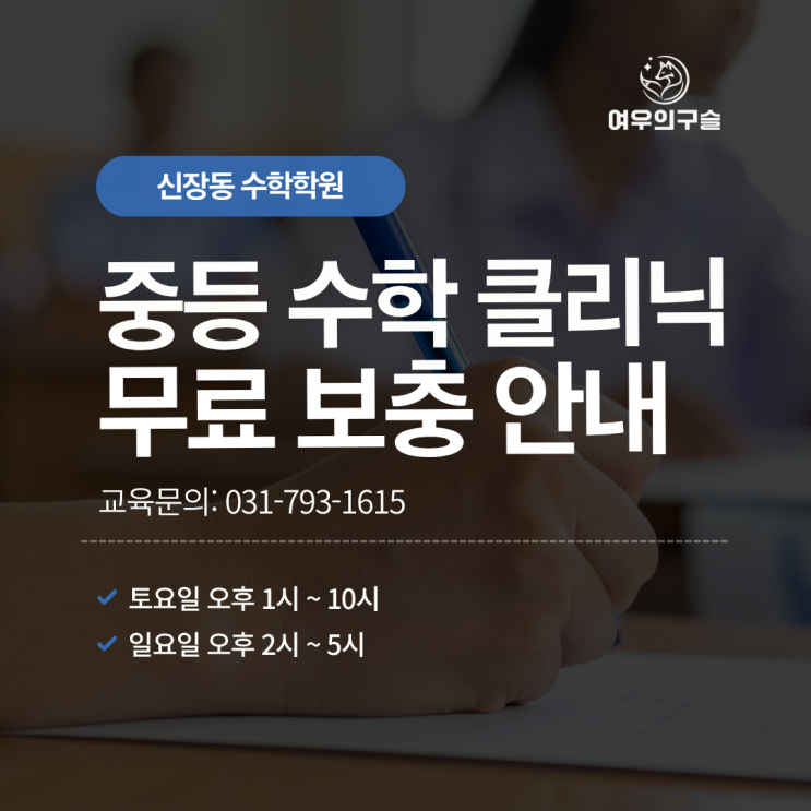 [신장동 수학학원] 여우의 구슬 중등 수학 클리닉 무료 보충 안내