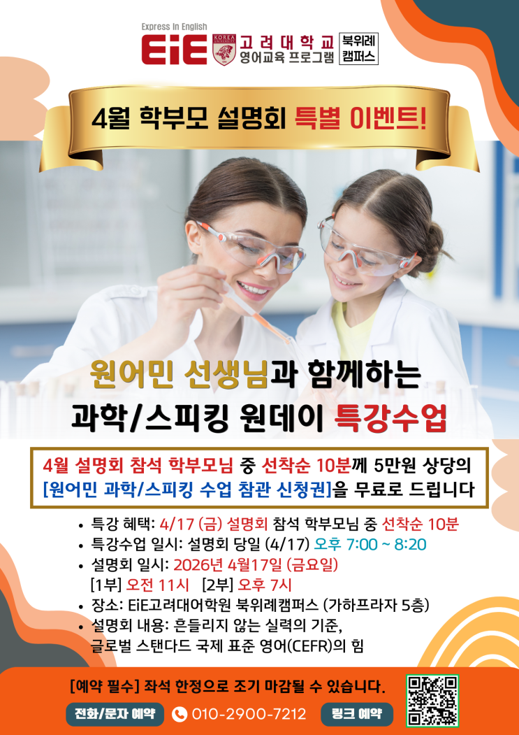 [4월 설명회] 원어민과 함께하는 과학수업 이벤트! (feat. 중등 영어 100점의 함정: 왜 고등학교에서 무너질까?)