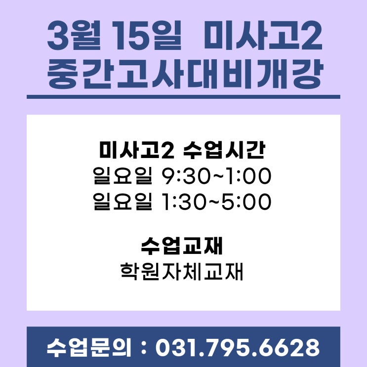 안녕하세요~ 영수전문 배움학원 입니다. 4월 말부터 시작되는 중간고사 대비에 준비하는 요즘, 내신대비 개강소식을 알려드리며 각 학교별 시간표를 공유 드리고자 합니다 미사중2, 미사중3, 윤슬중3, 덕풍중3 시간표 입니다. 미사고1, 풍산고1, 신장고1, 미강고1 시간표 입니다. 신장고2 시간표 입니다. 영어·수학 1학기 중간고사 대비반 시작합니다. “시험 4주 전, 성적은 이미 결정됩니다.” 미사에서 공부하는 아이들, 이미 상위권은 4~5주 전부터 ‘시험모드’ 들어간 거 알고 계셨나요? ✔ 시험 5주 전 체계적 관리 → 상위권 진입 확률 2배 시작 시점이 곧 점수 차이입니다. 왜 미사에서 격차가 더 크게 벌어질까요? 미사....... <img src="https://blogthumb.pstatic.net/MjAyNjAzMDlfNSAg/MDAxNzczMDM2NjY3MjU2.CBDor4u8OywNbitiA2LAP2ixUmxS-z-weLwwG9FgsBYg.JxFfYogwrU8NYI05-owtcHi9bx6aD7AG7f0kiNlL9CMg.JPEG/%C1%A6%B8%F1%C0%BB-%C0%D4%B7%C2%C7%D8%C1%D6%BC%BC%BF%E4_-001_%281%29.jpg?type=s3" />