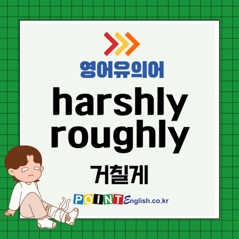 거칠게 영어유의어 - abruptly, coarsely, fiercely, forcefully, harshly, roughly, violently 외 Synonym, 유사어 안녕하세요. 여러분의 영어 궁금증을 해결해 드리고, 영어 실력 향상에 도움을 드리고픈 포인트영어입니다. 오늘은 2주 전의 '부드럽게'에 반대되는 의미인 '거칠게'로 번역할 수 있는 [부사]의 유의어를 소개해 드리겠습니다. 오늘 소개해 드리는 단어는 모두 심리적이나 행동적 성질에 있어서 거칠다는 의미로 쓰일 수 있습니다. 하지만 아주 소수의 단어만이 물리적인 성질에 있어서 거칠다는 표현으로 쓸 수 있습니다. 아래 잘 표시해 두었으니 쉽게 확인하실 수 있습니다. 거칠게 영어유의어 1. Abrupt....... <img src="https://blogthumb.pstatic.net/MjAyNjAyMTBfNiAg/MDAxNzcwNjQ5NTkxMjA3.a_EIiOBPoiSXbzh4Pjpaktd47SP7tDZVk4K-bQMBZaYg.c-lTZhQeULi7pictTD5Lpq3NJVbc7_eLOfQv_gDH8YUg.GIF/%BF%B5%BE%EE%C0%AF%C0%C7%BE%EE_harshly.gif?type=s3" />