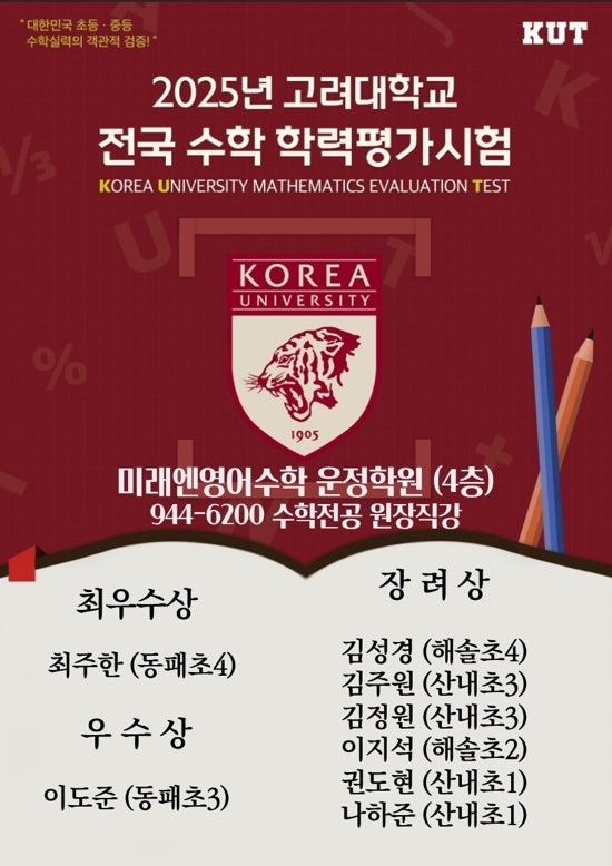 25년 고려대수학학력평가 수상자 안내
