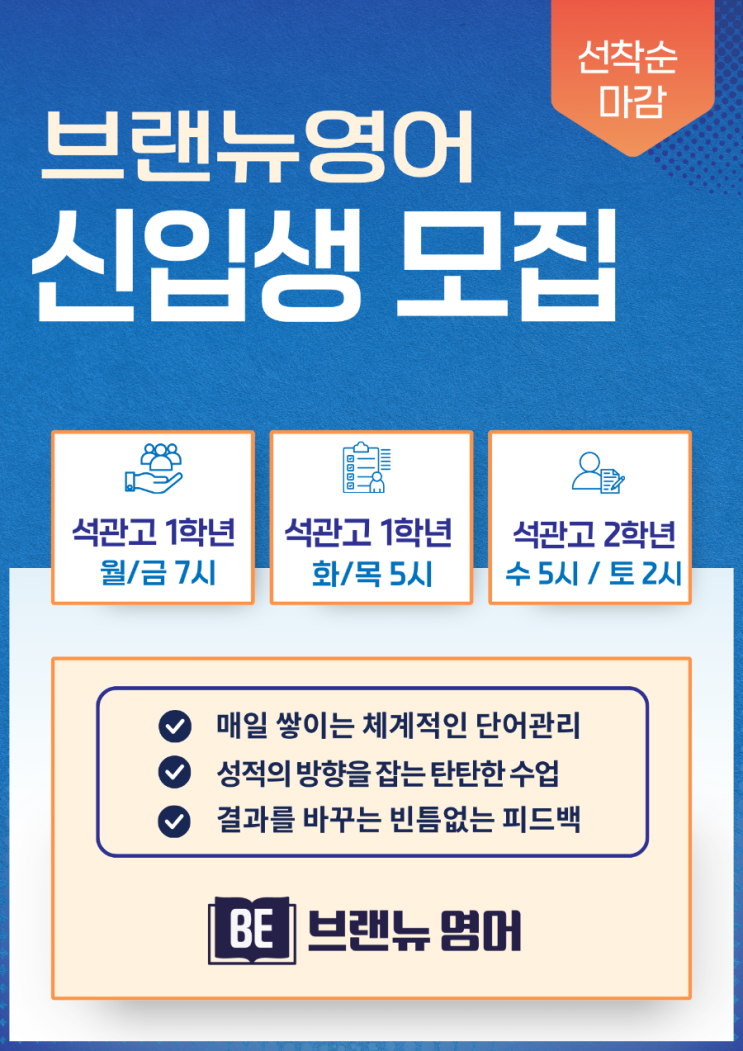 브랜뉴영어 석관고 신입생 모집