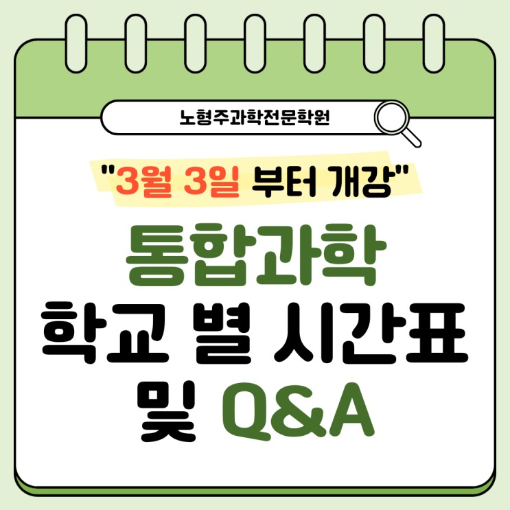 [은평구과학학원/노형주과학전문학원] 통합과학 학교별 정규 시간표 및 Q&A - 3/3부터 순차적 개강