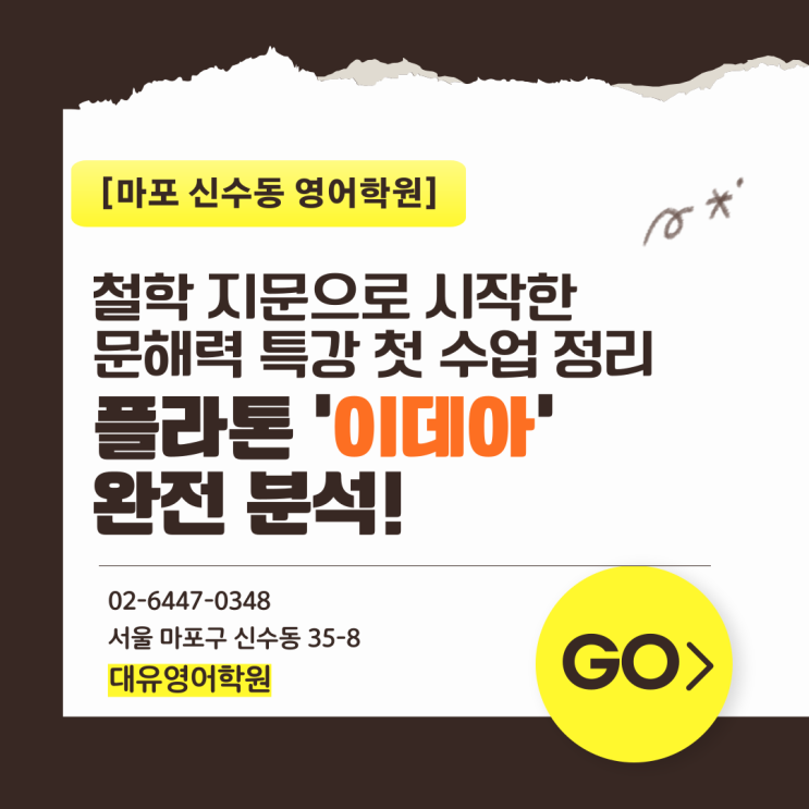 [마포 신수동 영어학원]철학 지문으로 시작한 문해력 특강 첫 수업 정리|플라톤 ‘이데아’ 완전 분석!