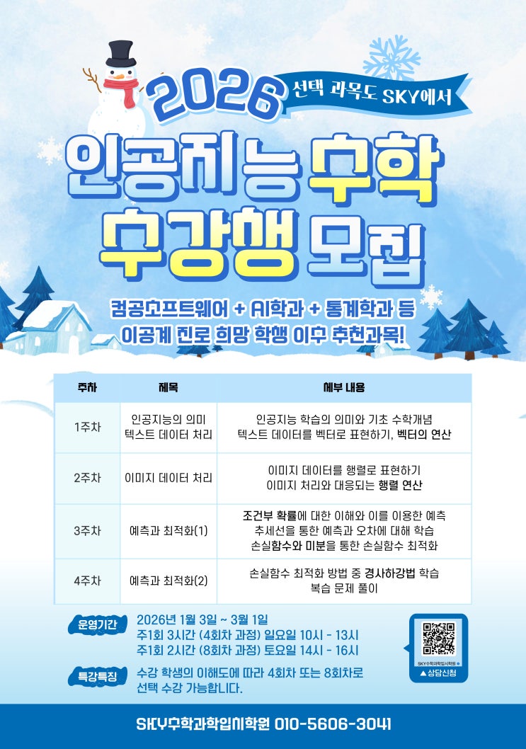 이공계 필수 선택과목 "인공지능 수학" 겨울방학 특강 대모집