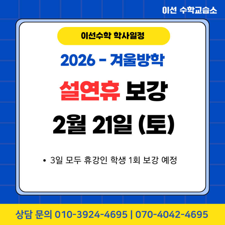 [이선수학 학사일정] 2월 21일(토) 설연휴 결석분 보강