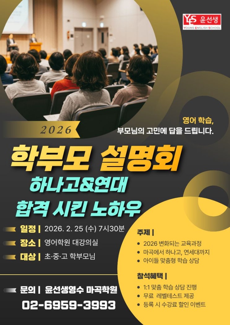 2026 하나고,연대 합격시킨 노하우 학부모 설명회 안내 | 마곡 신방화 영어학원 윤선생영수 마곡학원
