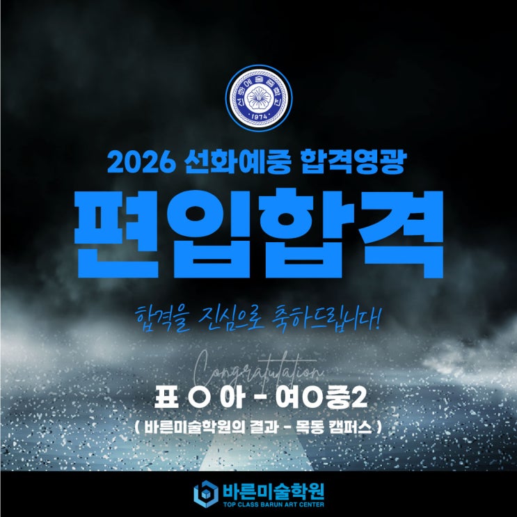 [예중예고입시전문] 방배바른미술학원 - 2026 선화예중 편입 합격!!!