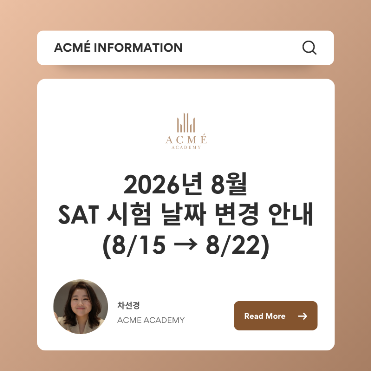 [SAT학원/아크메] 2026년 8월 SAT 시험 날짜 변경 안내 (8/15 → 8/22)