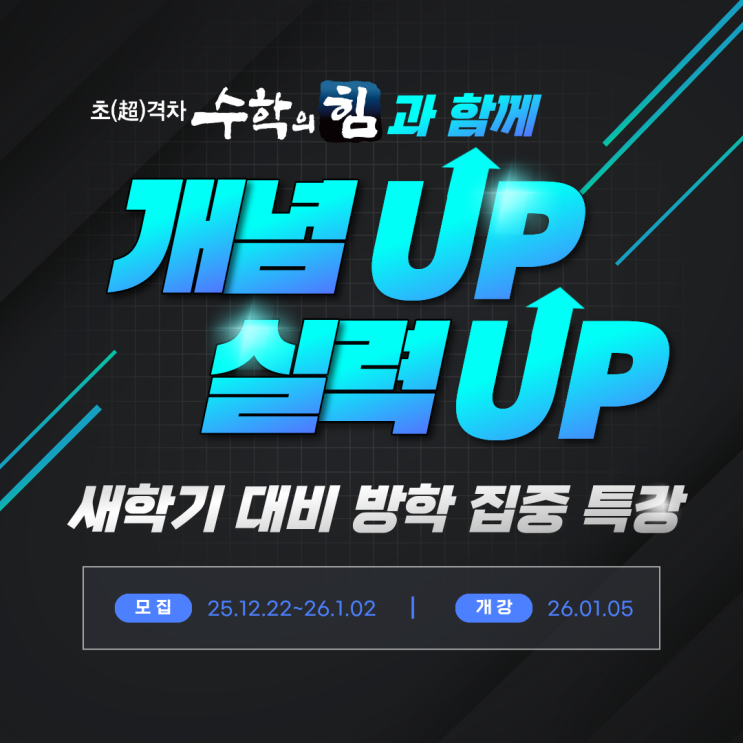 안녕하세요 수학의힘입니다. 12월 초부터 겨울방학 특강에 대한 문의가 꾸준히 이어지고 있습니다. 이번 겨울학기 특강은 우리 학생들에게 꼭 필요하고 도움 되는 내용으로 준비했습니다! 겨울방학은 쉬면서 에너지를 재충전하는 시간이기도 하지만 학기 중과 달리 정해진 루틴이 없다 보니 자칫 나태해지기 쉽습니다. 동시에 겨울방학은 학습 구조를 재정비하기에 가장 좋은 시간입니다. 학기 중보다 심리적 부담감이 낮은 시기이기 때문에 학생들이 스스로 개념을 정리하고 탐색하는데 집중할 수 있습니다. 부족한 부분은 보완하고 필요한 부분은 한발 앞서 나갈 수 있는 학습 설계의 골든타임이 바로 "겨울방학"입니다. 겨울학기 특....... <img src="https://blogthumb.pstatic.net/MjAyNTEyMTlfMTUw/MDAxNzY2MTMwMTE0Mjc5.zd__ySXZDL3eR-oYDl0gNAUaG6sJT4txCEWjCsySNjIg.M1crBP9EkQ07oNArrp4nmS00wfB5oUnnF-FiKJ9ExQsg.PNG/1.png?type=s3" />